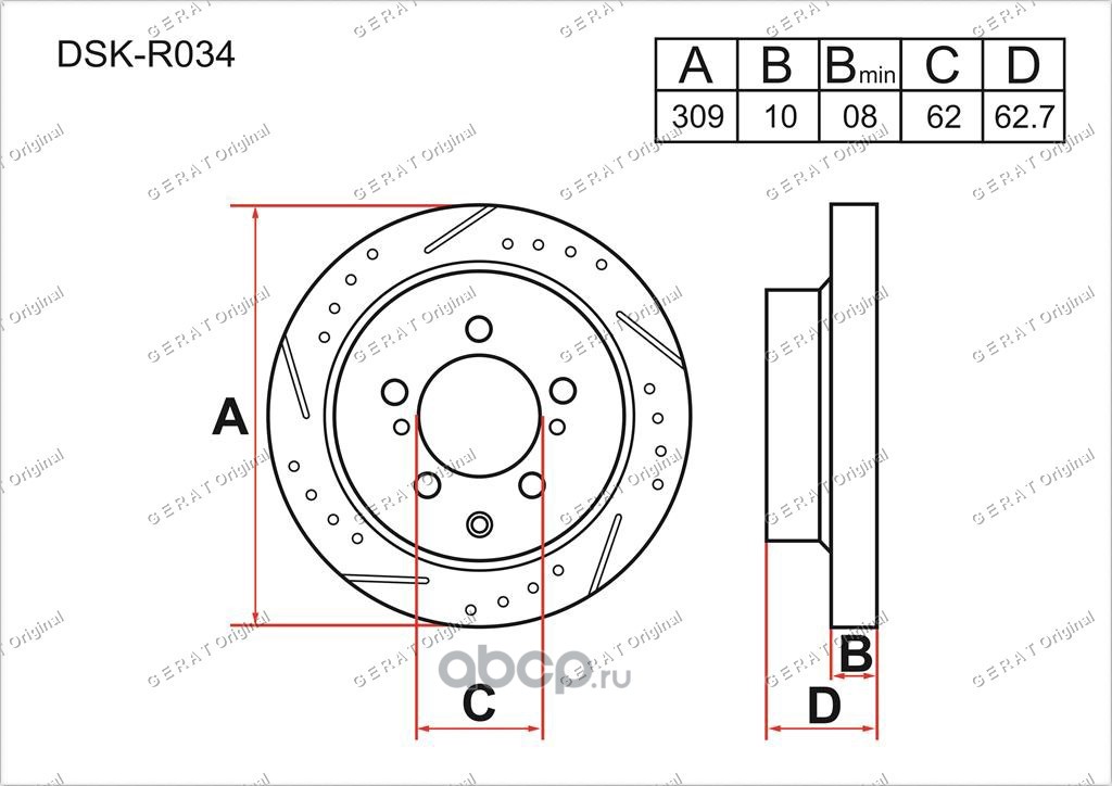 | Gerat | DSKR034 | Тормозной диск DSK-R034 (задний) | ||