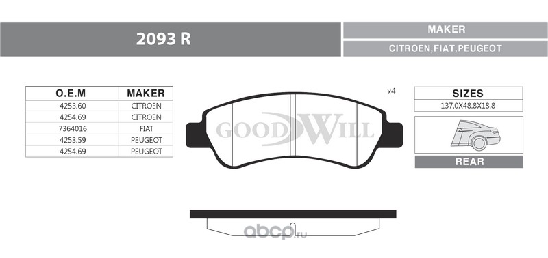 | Goodwill | 2093R | Колодки тормозные дисковые задние, комплект | ||