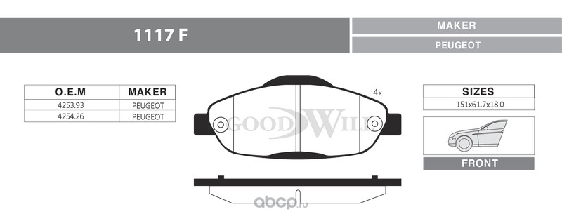 | Goodwill | 1117F | Колодки тормозные дисковые передние, комплект | ||