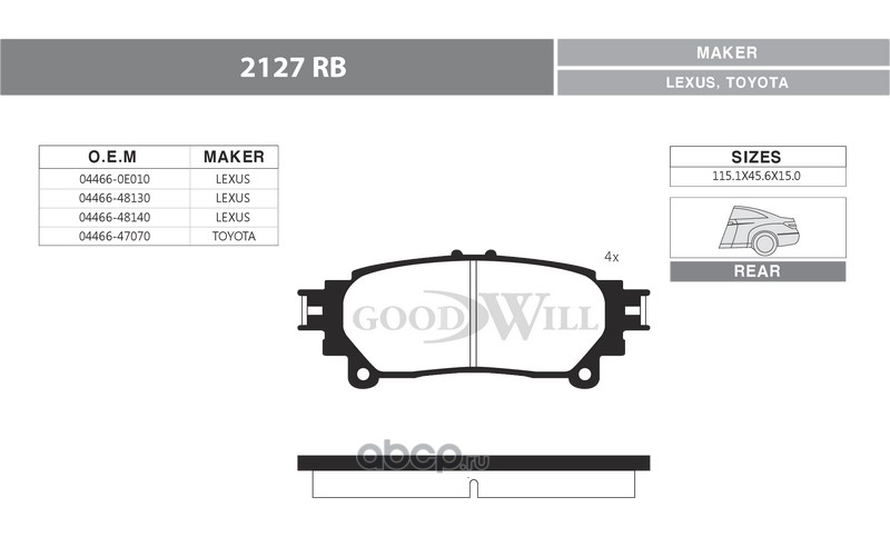 | Goodwill | 2127R | Колодки тормозные дисковые задние, комплект | ||