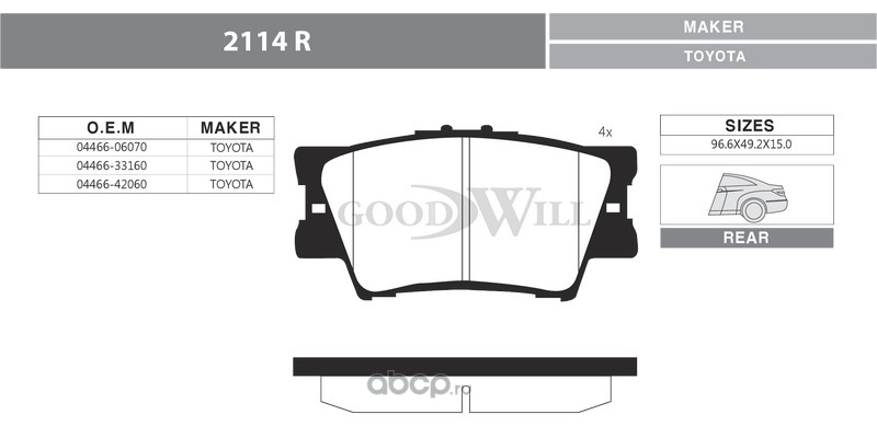 | Goodwill | 2114R | Колодки тормозные дисковые задние, комплект | ||