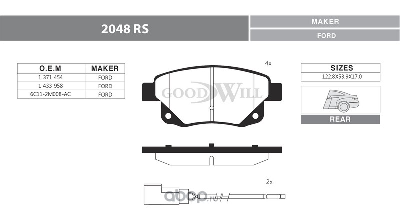 | Goodwill | 2048RS | Колодки тормозные дисковые задние, комплект | ||