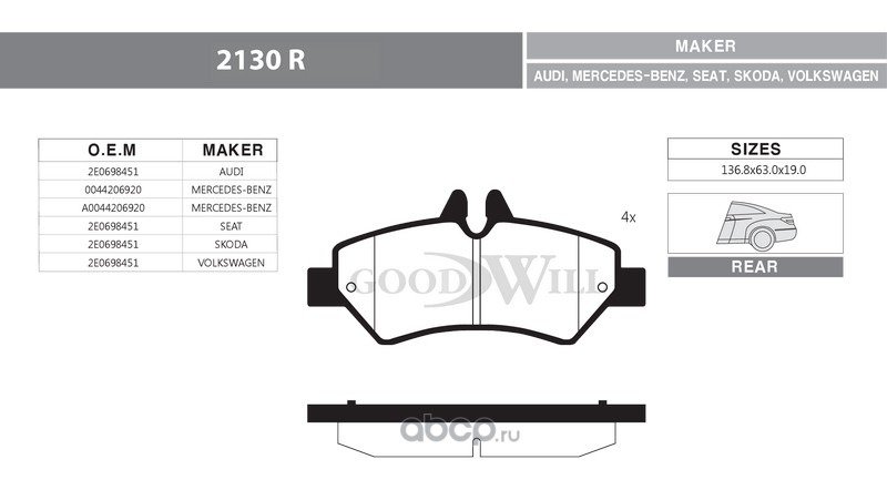 | Goodwill | 2130R | Колодки тормозные дисковые задние, комплект | ||