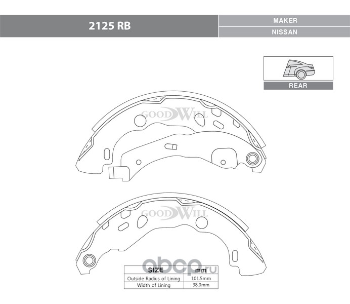 | Goodwill | 2125RB | Колодки тормозные барабанные, комплект | ||