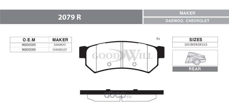 | Goodwill | 2079R | Колодки тормозные дисковые задние, комплект | ||