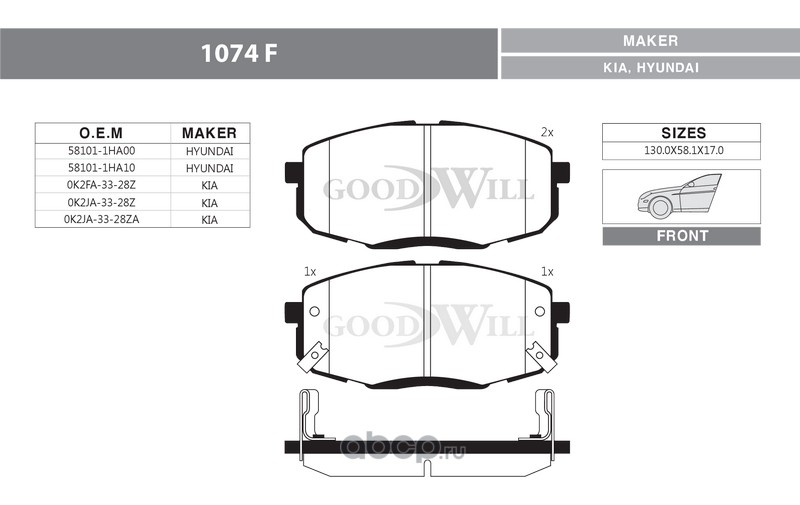 | Goodwill | 1074F | Колодки тормозные дисковые передние, комплект |