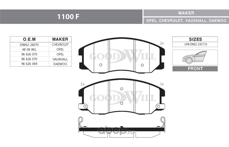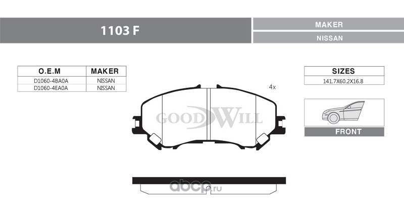 | Goodwill | 1103F | Колодки тормозные дисковые передние, комплект | ||