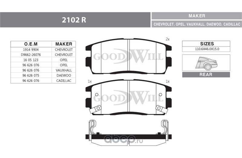 | Goodwill | 2102R | Колодки тормозные дисковые задние, комплект | ||