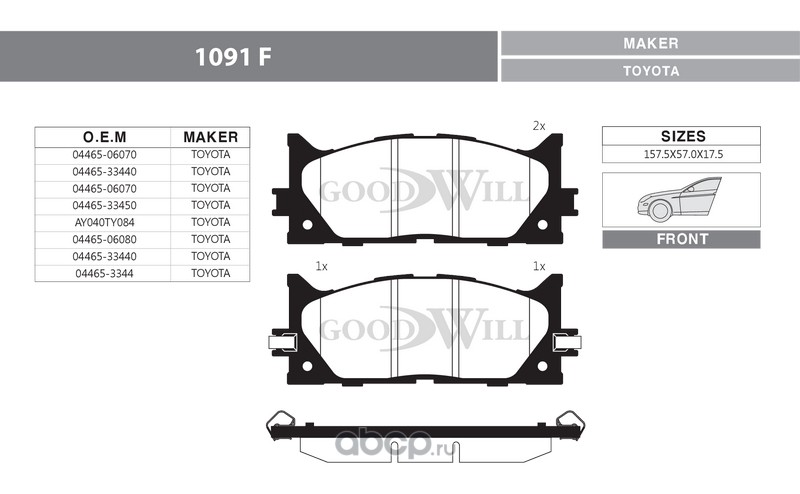 | Goodwill | 1091F | Колодки тормозные дисковые передние, комплект | ||