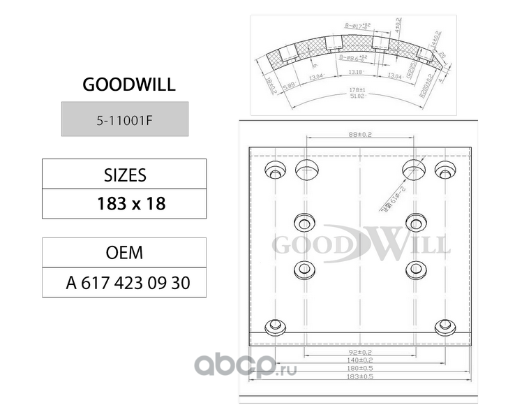 | Goodwill | 511001F | Колодки тормозные барабанные, комплект | ||