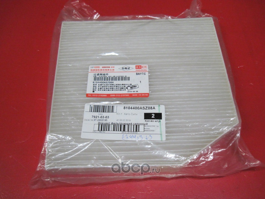 HAVAL 8104400ASZ08A ЭЛЕМЕНТ ФИЛЬТРУЮЩИЙ САЛОННЫЙ