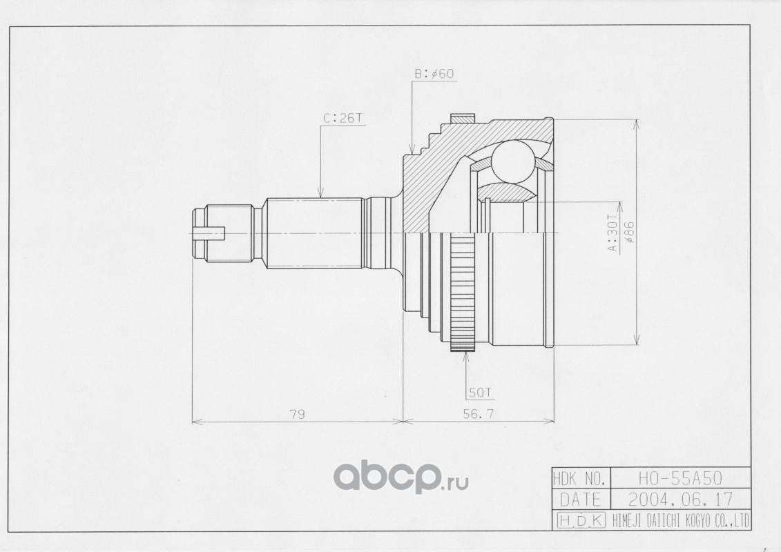 | HDK | HO055A50 | Шрус привода HDK | ||
