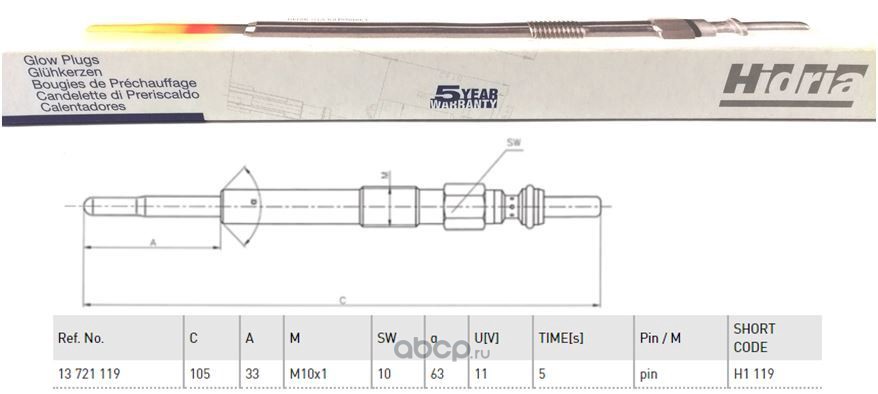 | HIDRIA | H1119 | Свеча накаливания | ||