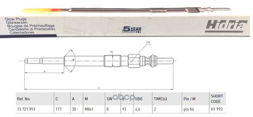 | HIDRIA | H1993 | Свеча накаливания | ||