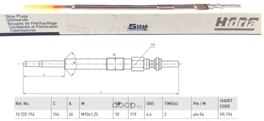 | HIDRIA | H5194 | Свеча накаливания | ||