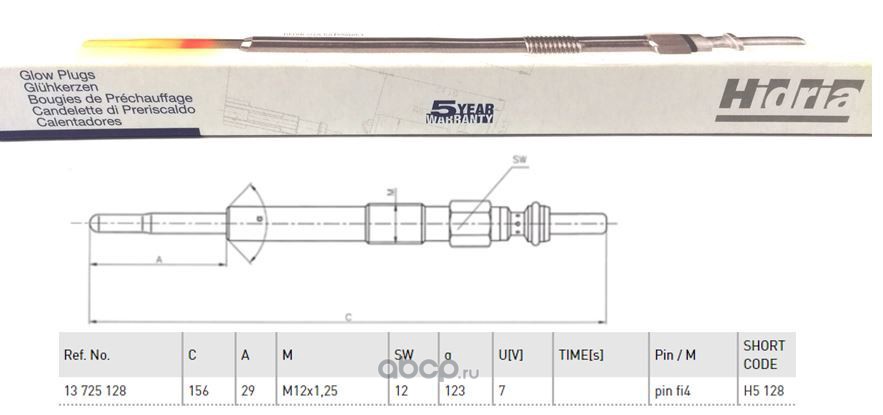 | HIDRIA | H5128 | Свеча накаливания | ||