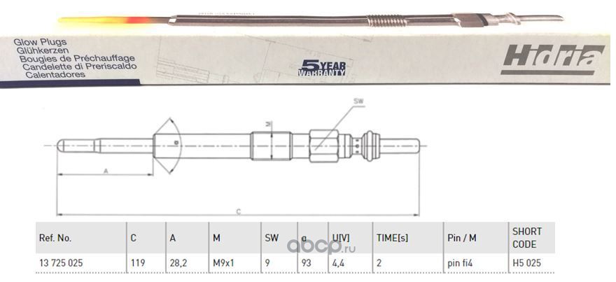 | HIDRIA | H5025 | Свеча накаливания | ||
