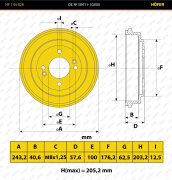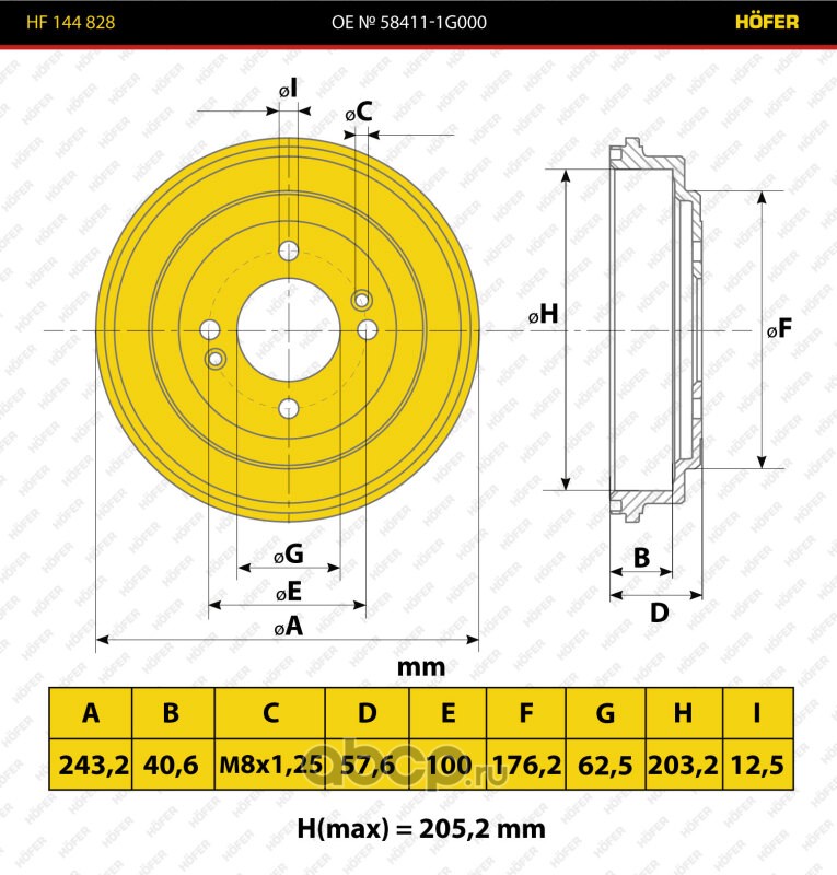 | HOFER | HF144828 | Барабан торм. чугун. Kia Rio (05-) (2шт) | ||