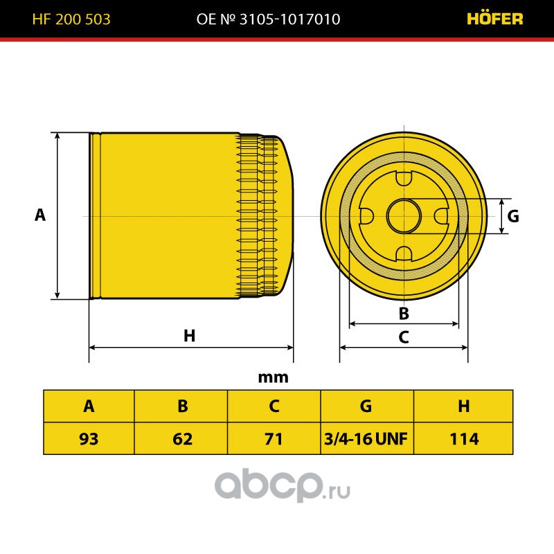 | HOFER | HF200503 | Фильтр масляный ГАЗ 3110 (дв.ЗМЗ-4062) | ||