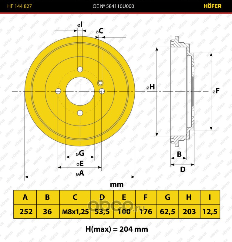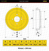 | HOFER | HF144827 | Барабан торм. чугун. Hyundai Solaris (10-) d=203mm (2шт) | ||