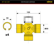 | HOFER | HF102339 | Крестовина КАМАЗ 6520 Евро-2, межосев.кард., малая (50х135) | ||