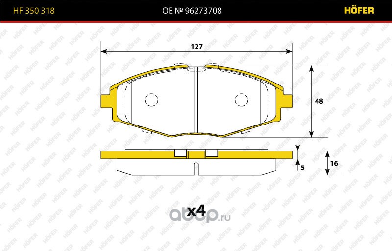 | HOFER | HF350318 | Колодка торм. перед. ""Premium"" Daewoo Matiz(05-),Lanos(97-),Chevrolet Spark(05-),Cherry QQ | ||