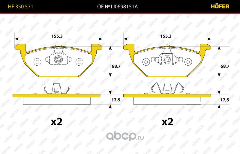 | HOFER | HF350571 | Колодка торм. перед. Skoda Fabia, Octavia (-13), VW Golf IV,Jetta,Polo, Audi A1 | ||