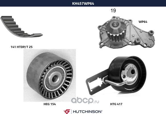 | HUTCHINSON | KH457WP64 | Водяной насос + комплект зубчатого ремня | ||