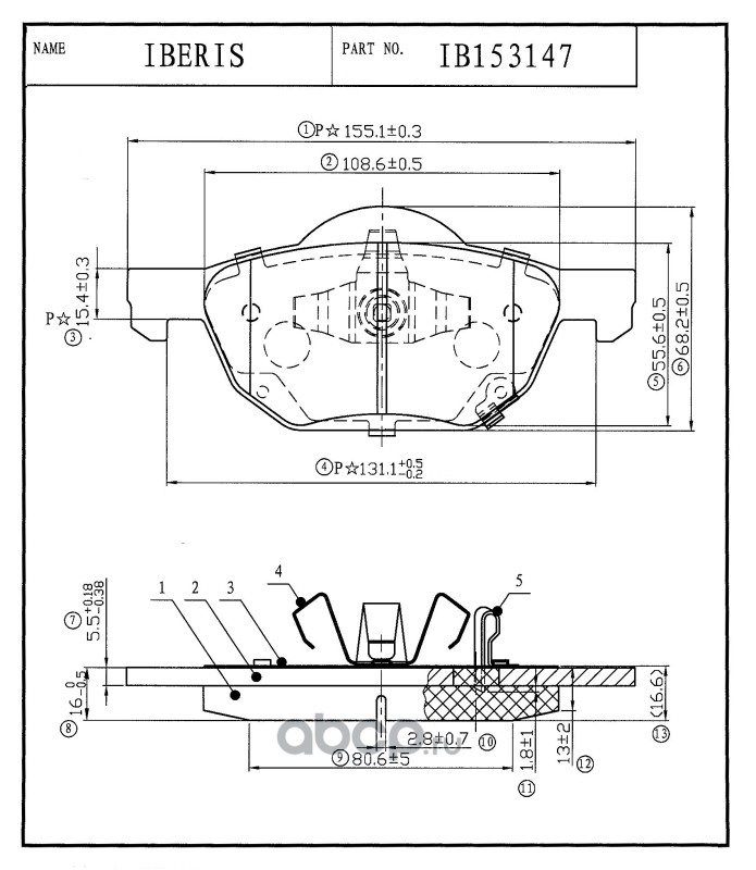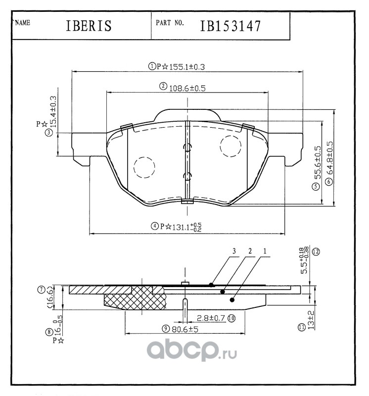 | IBERIS | IB153185 | КОЛОДКИ ТОРМОЗНЫЕ ПЕР К-Т MERCEDES W166 X166 GL350 ML2 | ||