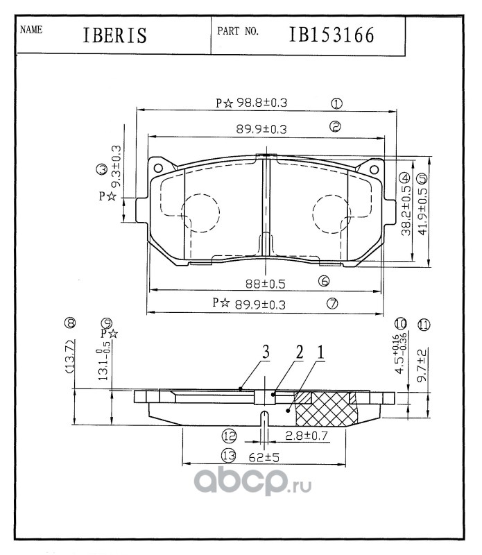 | IBERIS | IB153166 | КОЛОДКИ ТОРМОЗНЫЕ ЗАД К-Т KIA CARENS I, II 00-, SHUMA I, II 96-, SEPHIA I 97- | ||