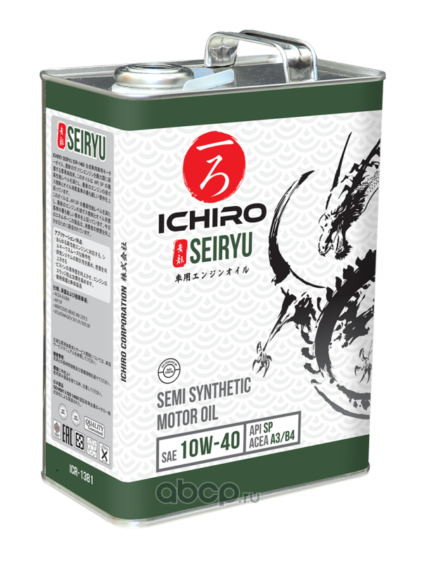 | ICHIRO | ICR13814 | Масло моторное синтетика ICHIRO SEIRYU SP, A3/B4 10W-40 4 л. |