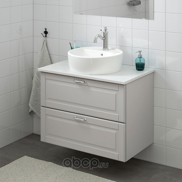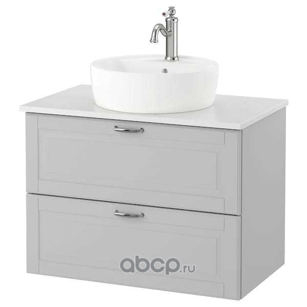 GODMORGON/TOLKEN ГОДМОРГОН/ТОЛКЕН / TÖRNVIKEN ТОРНВИКЕН Шкаф п-раковину/столешн45/раковина, Кашён светло-серый/под мрамор ХАМНШЕР смеситель 82x49x74 см
