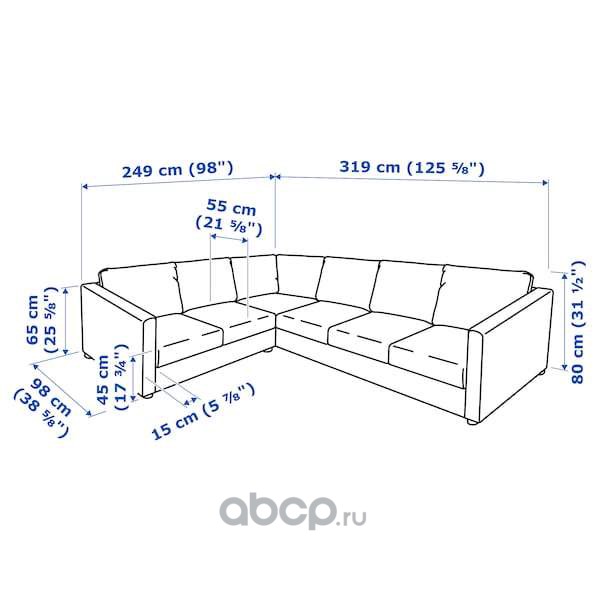 VIMLE ВИМЛЕ 5-местный угловой диван, Гранн/Бумстад черный