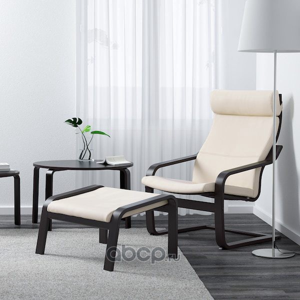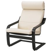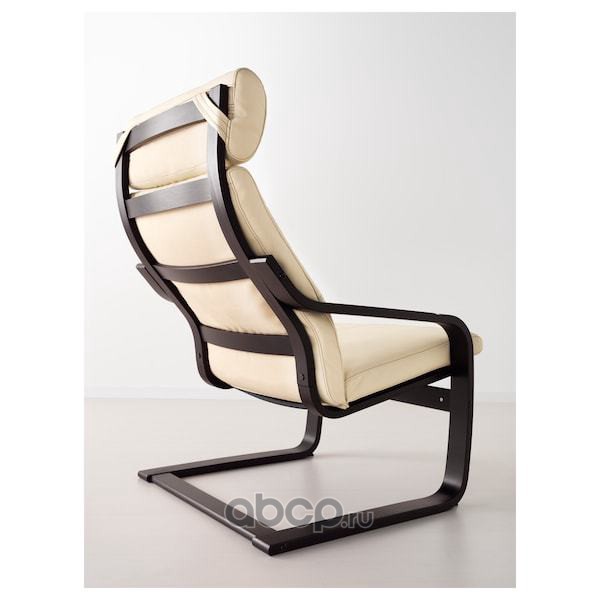 POÄNG ПОЭНГ Кресло, черно-коричневый/Глосе белый с оттенком