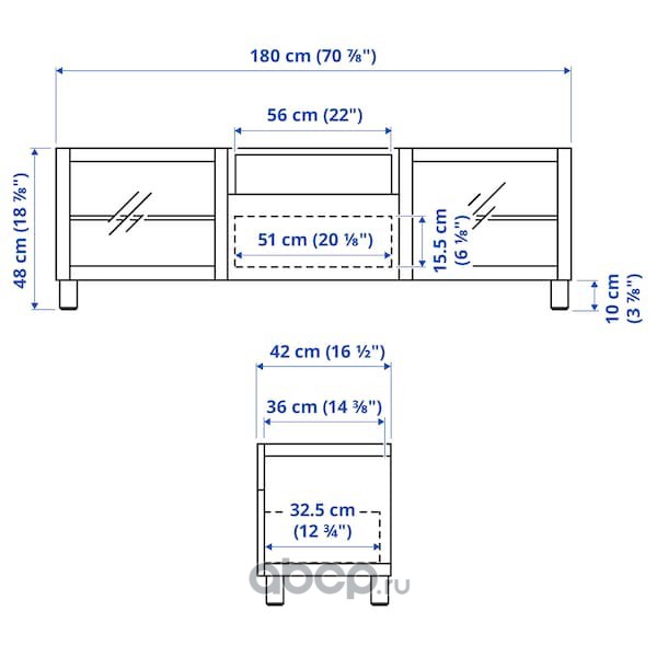 BESTÅ БЕСТО Тумба под ТВ, белый/СУТТЕРВ/КАББАРП белый 180X42X48см