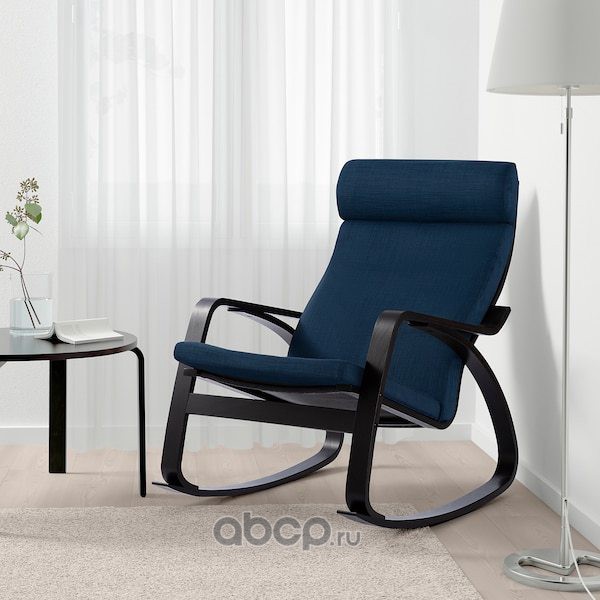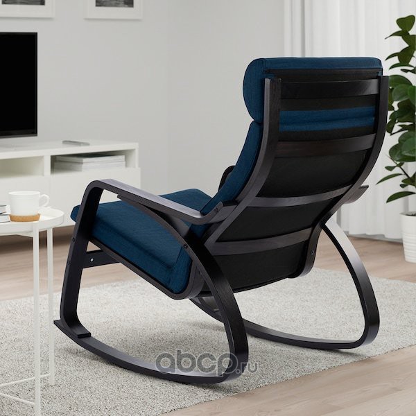 POÄNG ПОЭНГ Кресло-качалка, черно-коричневый/Шифтебу темно-синий