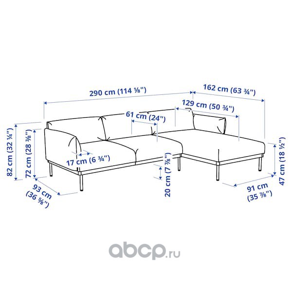 ÄPPLARYD ЭППЛАРЮД 3-местный диван с козеткой, Лейде светло-серый