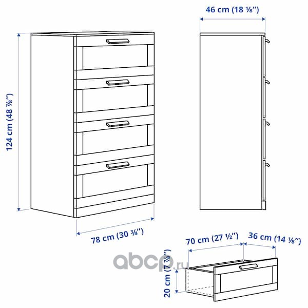 BRIMNES БРИМНЭС Комод с 4 ящиками, черный/матовое стекло 78X124см