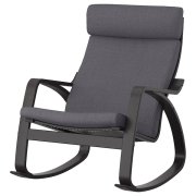 POÄNG ПОЭНГ Кресло-качалка, черно-коричневый/Шифтебу темно-серый