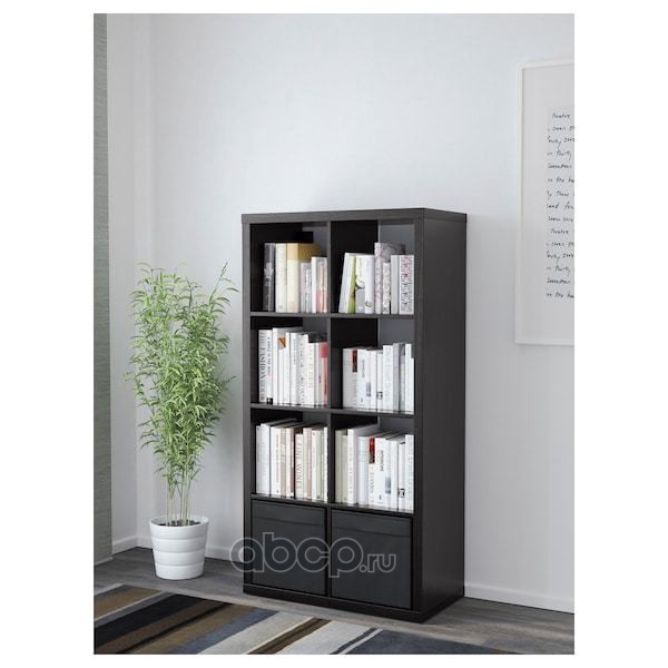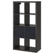 KALLAX КАЛЛАКС Стеллаж с 2 вставками, черно-коричневый/черный 77X147см