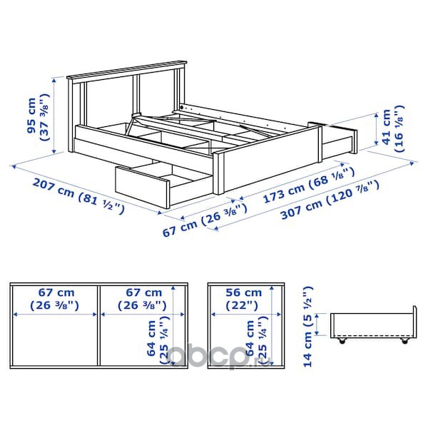 SONGESAND СОНГЕСАНД Каркас кровати с 4 ящиками, белый/Лонсет 160X200см