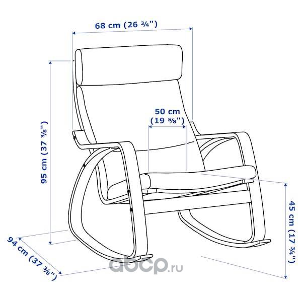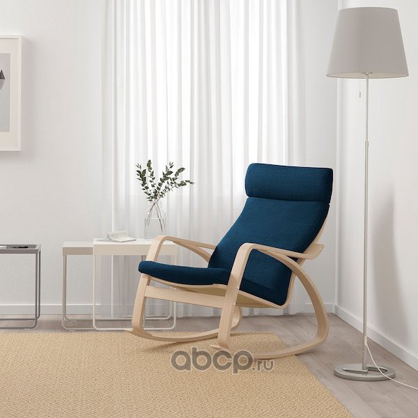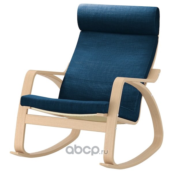 POÄNG ПОЭНГ Кресло-качалка, дубовый шпон, беленый/Шифтебу темно-синий
