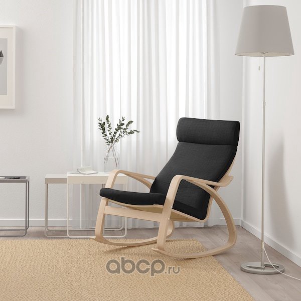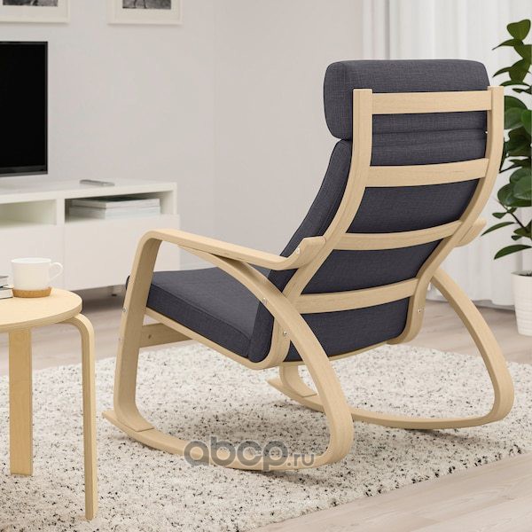 POÄNG ПОЭНГ Кресло-качалка, дубовый шпон, беленый/Шифтебу темно-серый