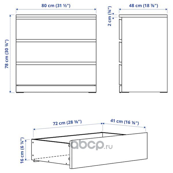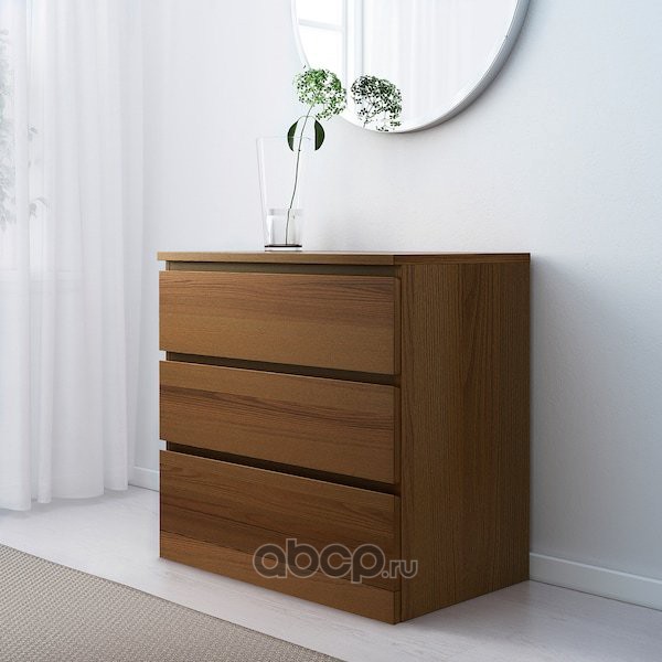 MALM МАЛЬМ Комод с 3 ящиками, коричневая морилка ясеневый шпон 80X78см