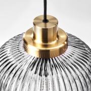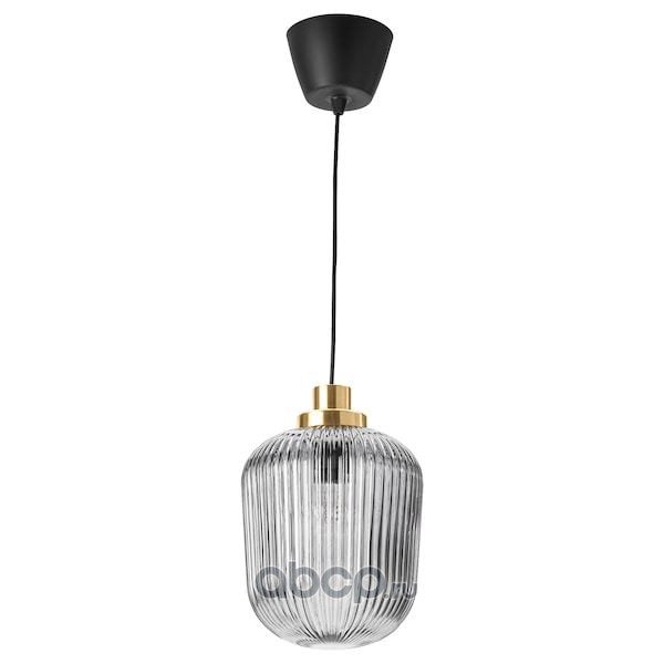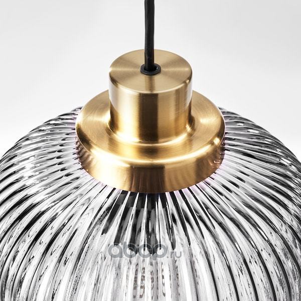 SOLKLINT СОЛКЛИНТ Подвесной светильник, латунь/серое прозрачное стекло 22см