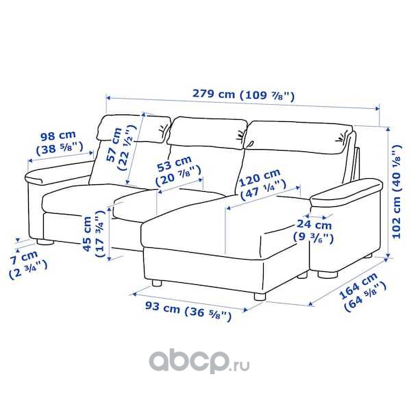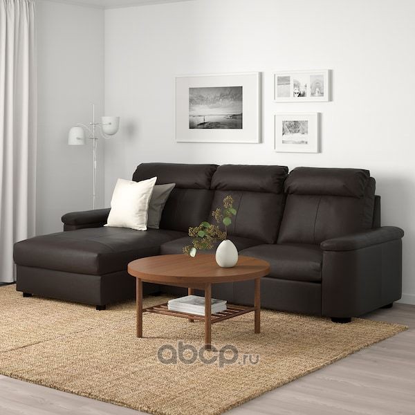 LIDHULT ЛИДГУЛЬТ 3-местный диван, с козеткой/Гранн/Бумстад темно-коричневый