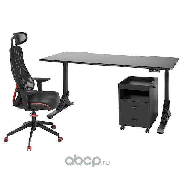 UPPSPEL УППСПЕЛЬ / MATCHSPEL МАТЧСПЕЛ Письменный стол, стул и тумба, черный