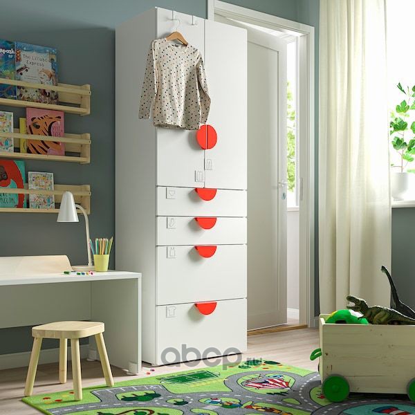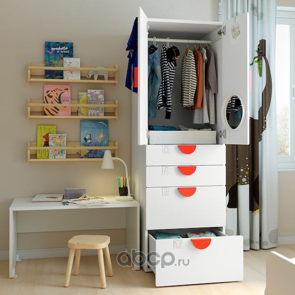 SMÅSTAD СМОСТАД / OPPHUS ОПХУС Гардероб, белый белый/с 4 ящиками 60X57X181см