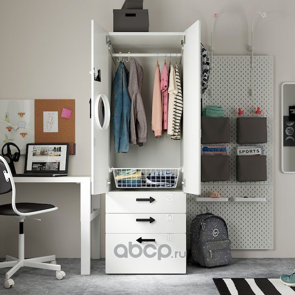 SMÅSTAD СМОСТАД / OPPHUS ОПХУС Гардероб, белый белый/с 3 ящиками 60X57X181см