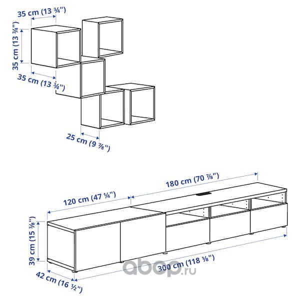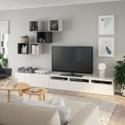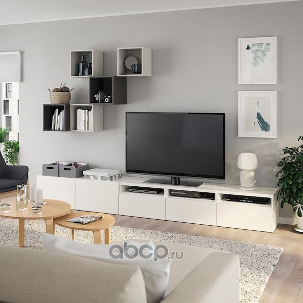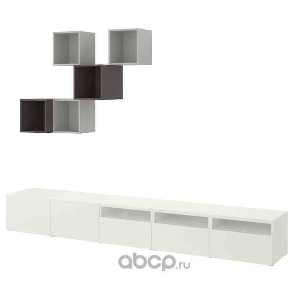 BESTÅ БЕСТО / EKET ЭКЕТ Комбинация для ТВ, белый/светло-серый/темно-серый 300X42X210см